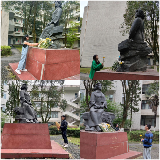 缅怀先辈们激情燃烧的岁月,感受烈士们愿为祖国抛头颅、洒热血的青春激昂。“缅怀,为铭记,更为传承。每一次致敬英烈,是对初心的叩问,也是对精神的唤醒。”“革命烈士用炙热的献血换取国家的安宁与太平,缅怀、致敬、前行”......清明前夕,140多名入党积极分子用不同方式祭奠革命英烈,开展党史学习教育。食工本科生党支部组织入党积极分子整理江竹筠、邱少云、黄继光等英烈事迹形成烈士集;食质本科生党支部组织入党积极分子共同创作诗歌《为什么我们脚步轻轻》歌颂英烈精神。多个支部充分用好校内红色资源,纷纷组织入党分子学习江姐事迹,100多名积极分子瞻仰江竹筠烈士雕像,敬献鲜花。入党积极分子们还在通过QQ空间、微信朋友圈开展清明“云祭扫”缅怀英烈,线上祭扫活动。同学们用行动学习党史致敬先烈,继承先烈用生命书写担当的崇高精神,在理论学习、实践活动中端正入党初心。