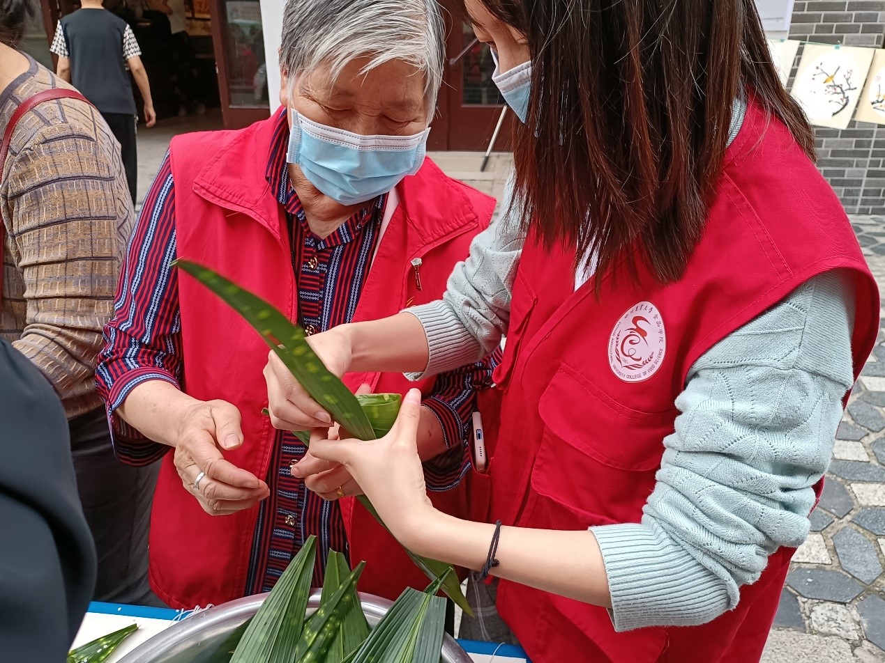 5月30日,在端午节来临之际,食工党支部和研究生第一党支部党员代表前往雅安市西大街社区聆听苍坪山下的红色电报,与社区老人一起包粽子,品粽香,感受传统文化。