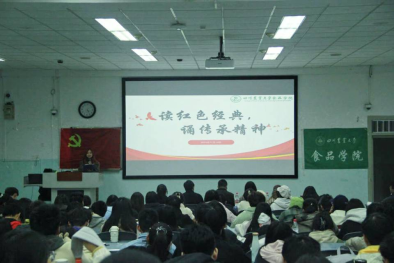 11月14日,必赢亚洲bwin官网于十教A101举办“读红色经典,颂传承精神”演讲比赛,此次比赛旨在帮助食品学子深入学习红色文化,传承红色精神,培育新时代青年文化底蕴。学院副院长张清、党委办主任胡敏伦、党委办老师高晓倩、学生组织主席团成员、党建办宣教部等近200名师生参与。