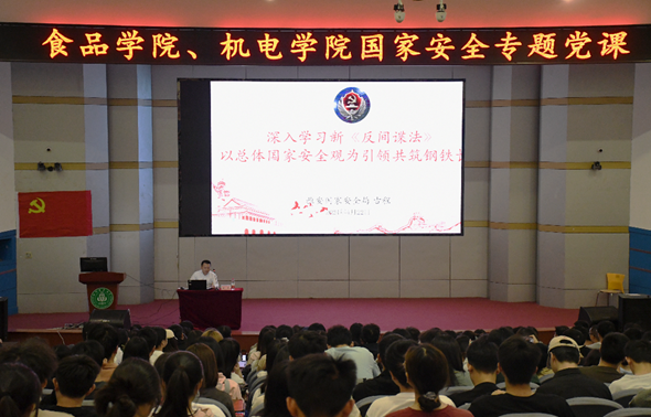 国家安全是安邦定国的重要基石,是改革发展的前提。改革开放以来,我们党始终把维护国家安全和社会安定作为党和国家的一项基础性工作,保持了我国社会大局稳定,为改革开放和社会主义现代化建设营造了良好环境。专家带领师生学习了新《反间谍法》,并从国家安全工作面临的复杂而严峻的形势出发,以详实的数据和发人深省的鲜活案例深入浅出地解读了传统安全和非传统安全的具体内涵,围绕道路、体制、目标、特征四个方面,详细阐述了总体国家安全观的基本内涵,介绍了树牢总体国家安全观的重要意义及实践路径。