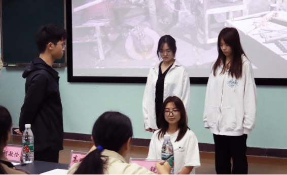 随后,第六组同学聚焦中国共产党的成立,讲述了当时平均年龄 28 岁的青年们在复杂环境下踏上征程的故事,彰显了先辈们无畏的勇气和崇高的理想。第三组同学则以深情的方式表达了川农热土上杰出人物和革命先烈在心中留下的深刻印记,引发了在场师生的强烈共鸣。第八组同学以江姐等革命党人为例,生动诠释了坚韧不拔、不屈不挠的革命精神,他们为共产主义和新中国建立义无反顾走向牺牲的伟大事迹令人动容。