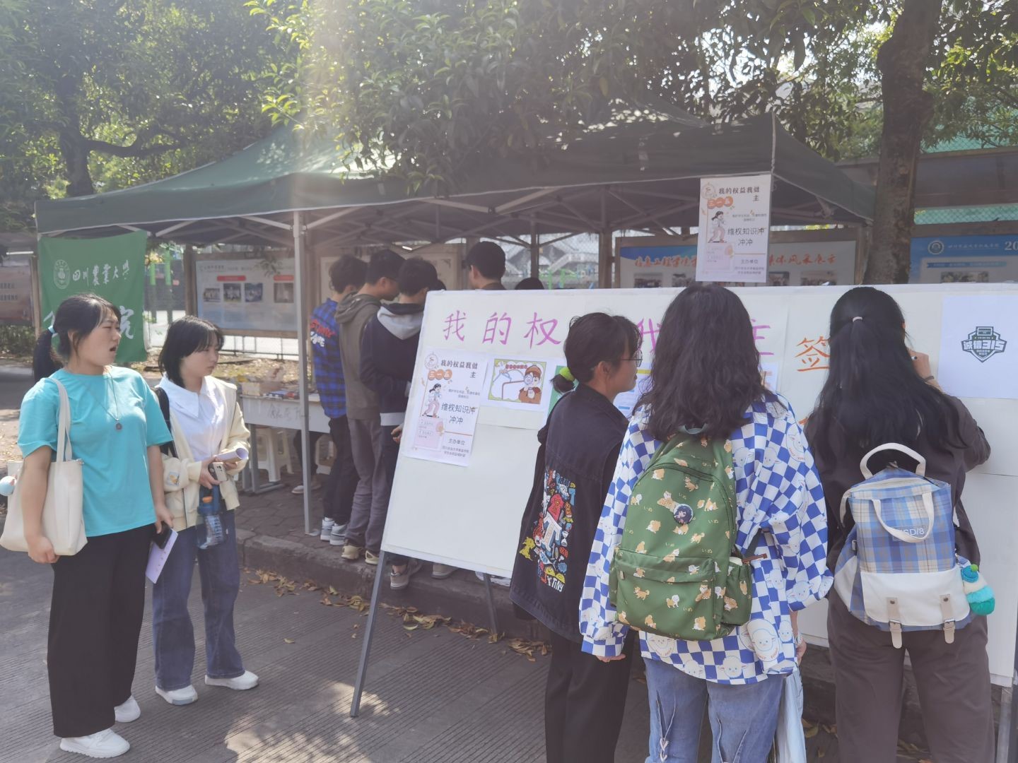 在本次线下设点活动中,同学们在积极回答维权知识、在维权签名墙上签名、分享维权知识及维权经历后,还获得精美的奖品。如今群众维权意识不断提高,食品安全问题更是被推向了风口浪尖。权益部负责人郭子萱说道:“最新的人造鱼翅、肯德基速成鸡问题,都让我们了解了日常的消费行为不能避免。大多数同学消费维权意识薄弱,在面临侵权受害行为时不知所措。此次设点活动,不仅考察了同学们对消费维权的关注度,还帮助同学们解决有关消费方面的疑难问题。”