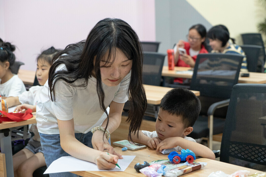 图为孩子们正在进行趣味绘画比赛,团队成员正在帮助年龄较小的小朋友。中国青年网通讯员 蔡健行 摄