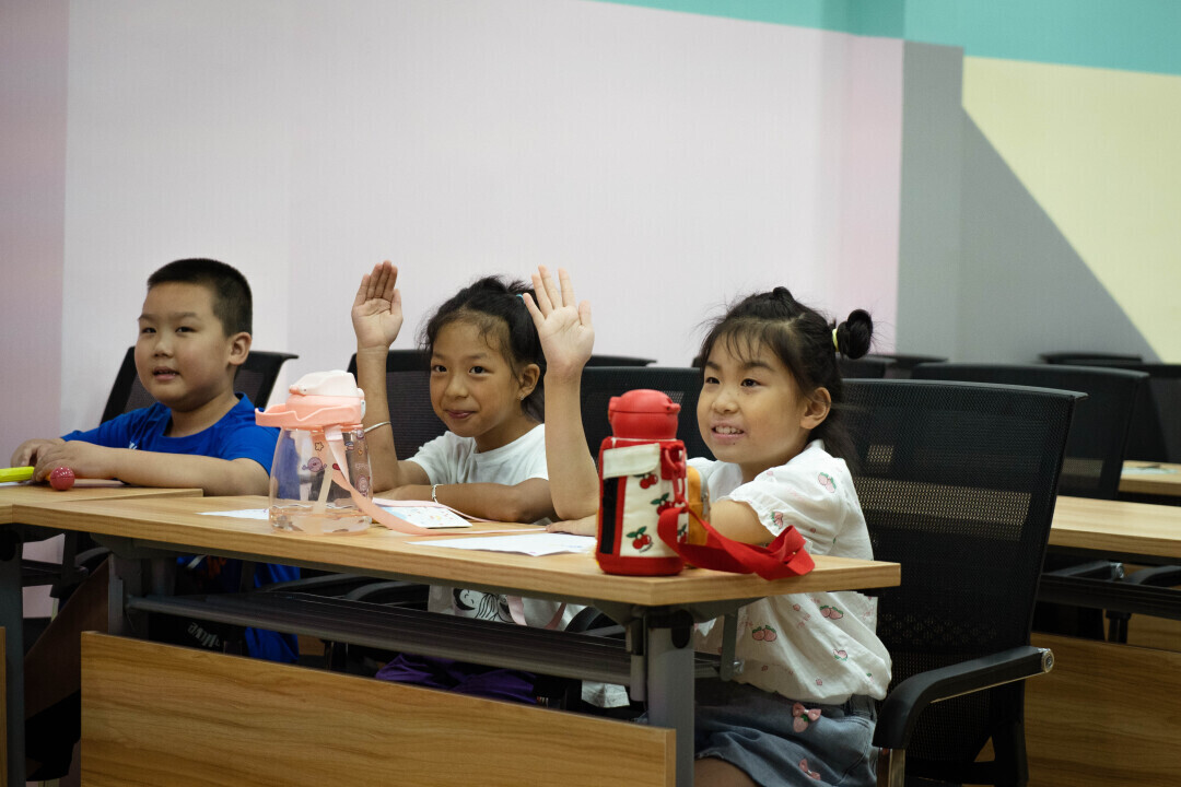 图为社区小朋友正在积极举手回答问题。中国青年网通讯员 蔡健行 摄