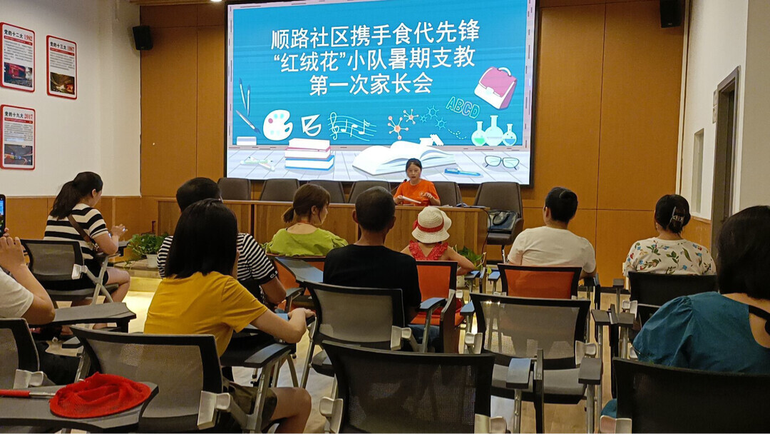 在家长会上介绍了本次支教活动的时间:从7月11日正式开始,7月30日结束;同时也详细介绍活动服务的内容和注意事项等,以暑假班为单位通过线下教学和线上微信群相结合的形式,开展辅导学生的作业、手工书法、趣味知识科普(食品知识、红色饮食文化)等其他教学服务,为学生们提供一个优质的学习环境,为社区的基础教育贡献一部分力量;在会议现场也强调本次活动安全的相关事宜,并向家长承诺会细心照顾好每一位儿童,各位家长也在安全责任书上郑重的签下自己的名字;在会议最后为参会人员实时解答疑惑与完成登记信息,做到公开透明。顺路社区曾婷与穆家社区的教师也表示对本次支教活动的大力支持与高度的期待。
