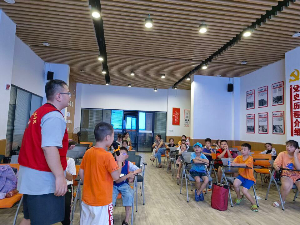 队员万昕怡带小朋友做“食”分营养小游戏,回顾所学知识。中国青年网通讯员苗晨曦摄