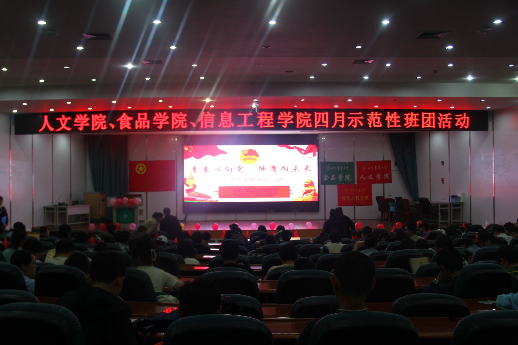 4月22日晚,为持续深化学习贯彻习近平总书记关于青年工作的重要思想,引导青年学生深刻感悟党领导中国青年运动的光辉历程,由食品、人文、信息工程学院团委特联合主办,各学院团委组织建设与发展中心、食工202206、汉语202102、汉语202103、计算机202103、大数据202201团支部联合承办的“青春心向党,挺膺向未来”四月主题班团活动于十教小礼堂顺利开展。