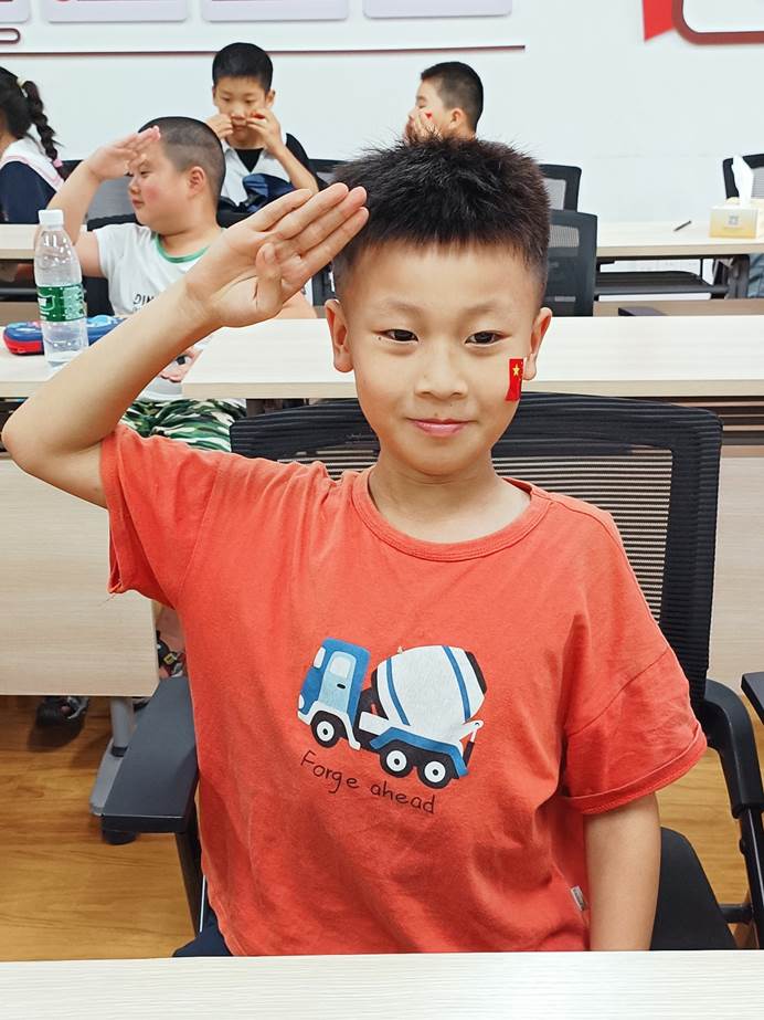 图为“共和国的旗帜”小游戏中小朋友行少先队队礼。中国青年网通讯员 万昕怡 提供
