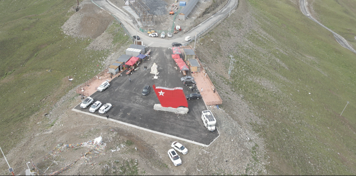 随后,团队来到了夹金山脚下,体验当年红军翻越夹金山的路程,感受当年长征的艰辛。夹金山巍然矗立、直插云霄,眼望去,山体危岩耸突、峭壁如削。翻越夹金山的旅途充满着险恶崎岖的山路与尽收眼底的山河远阔,在氧气瓶、食物、登山杖等装备齐全的情况下,团队成员的翻山之旅仍出现了体力不支等问题,这也燃起了成员们了对中国工农红军在如此高寒缺氧的情况下翻越崇山峻岭的敬佩之意。在海拔高达4114米的小金县与宝兴县分界碑旁,团队成员俯瞰了红军翻越的第一座雪山的险峻与雄奇,对当时红军身着单衣和草鞋在皑皑雪山上遭受住了生死考验惊叹万分。