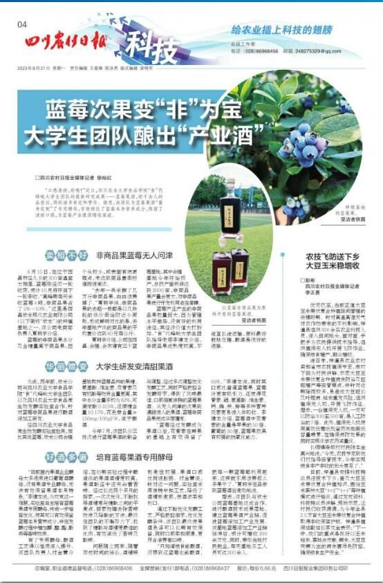 据悉,该团队与欣禾公司蓝莓基地达成合作,进行酿酒技术成果落地,建立蓝莓果酒产业链,促进蓝莓深加工产业发展。该基地蓝莓深加工产业链延伸后,预计可增收300余万元,同时,带动当地村民就业,每天基地务工人员可达200余人。