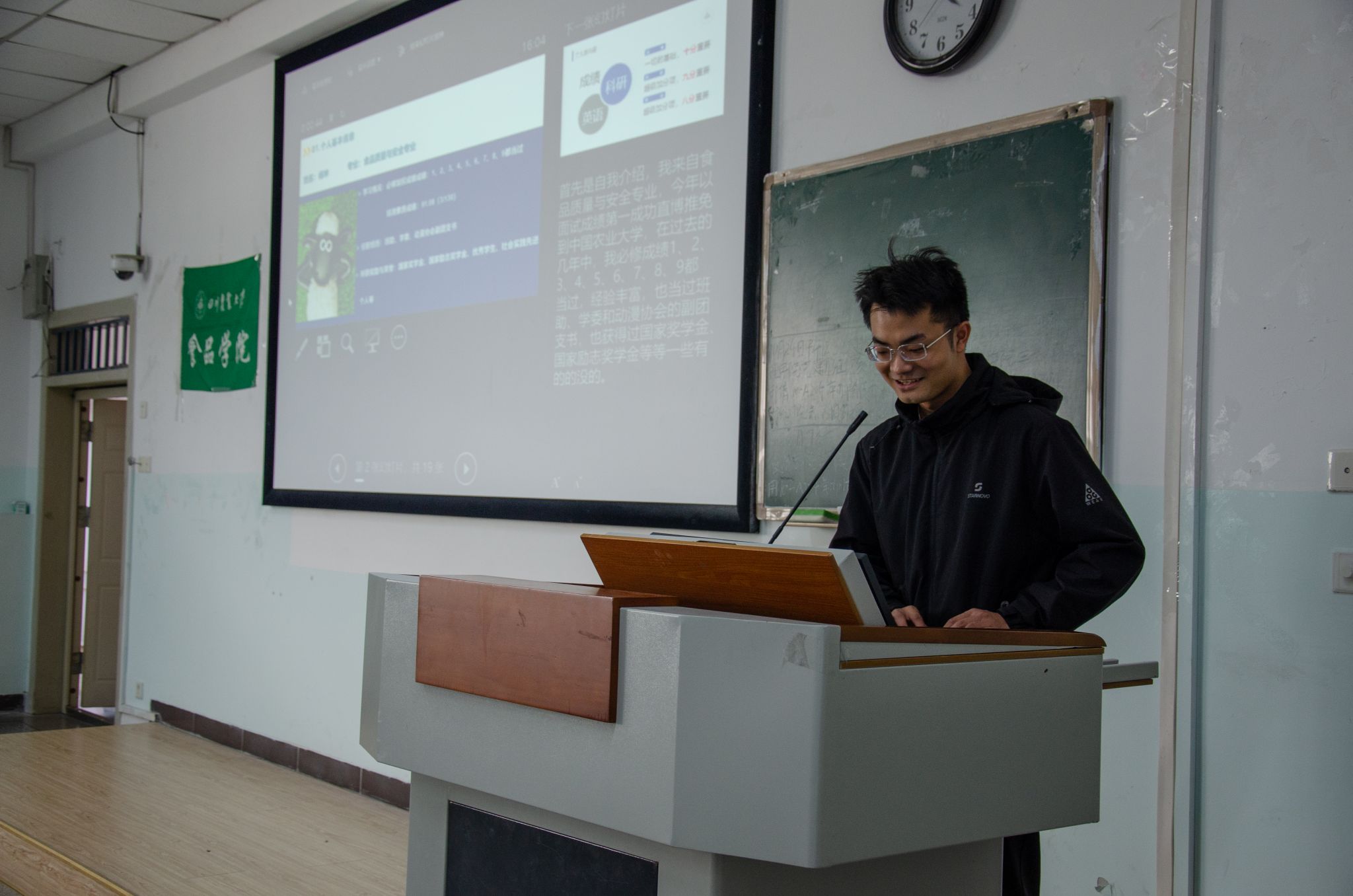 食品质量与安全专业2020级杨坤师兄以“谁的青春不迷茫,如何过好高质量大学”为主题,强调了成绩的重要性,并提出了“十分成绩,九分科研,八分英语”的独特见解,还向同学们传授了自己奋战保研之路的“附魔六神装”,即努力学习、本科成绩、英语学习、专业实习、专业论文、全国比赛,为同学们提供了一份宝贵的学习指南。连续三年位列专业第一的刘红林同学为迷茫的同学们指明了前进的方向。她向同学们分享了自己的学习经验,并鼓励他们遵循本心,根据自身情况选择适合自己的路。“不要人云亦云”她说,“坚持自己本心,真实地活出自己,追求梦想,充实生活并找到意义。倾听内心的声音,不断探索和成长。相信自己,在大学中度过充实有意义的时光。”