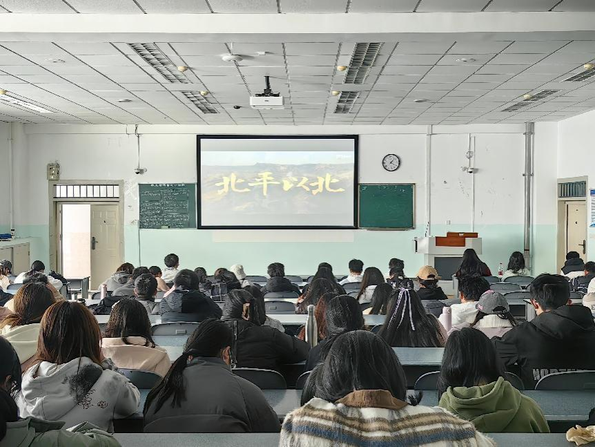 本次活动观看影片《北平以北》,影片讲述了以主人公白乙化为代表的一二•九学生运动骨干和以段苏权为代表的工农红军,在民族危亡的时刻挺身而出,胸怀民族大义和家国担当,高举青春战旗,深入敌人的心脏虎口拔牙,依据党的建设、武装斗争、统一战线三大法宝,在平北建立基层人民政权、建立抗敌军分区司令部,带领平北人民英勇抗战的故事。同学们认真观看电影,不少同学边观看边写下观影感悟,活动现场秩序井然。