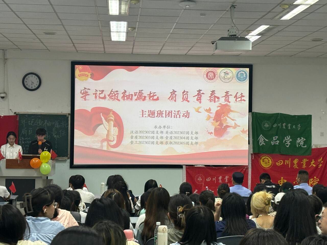 活动展示各团支部线下组织带领同学们观看由校团委原创五四主题视频《青春的誓言》照片,引导青年共同唱响青春之歌,在学科专业、基层组织建设、艺术文化营造等方面激发青春活力。