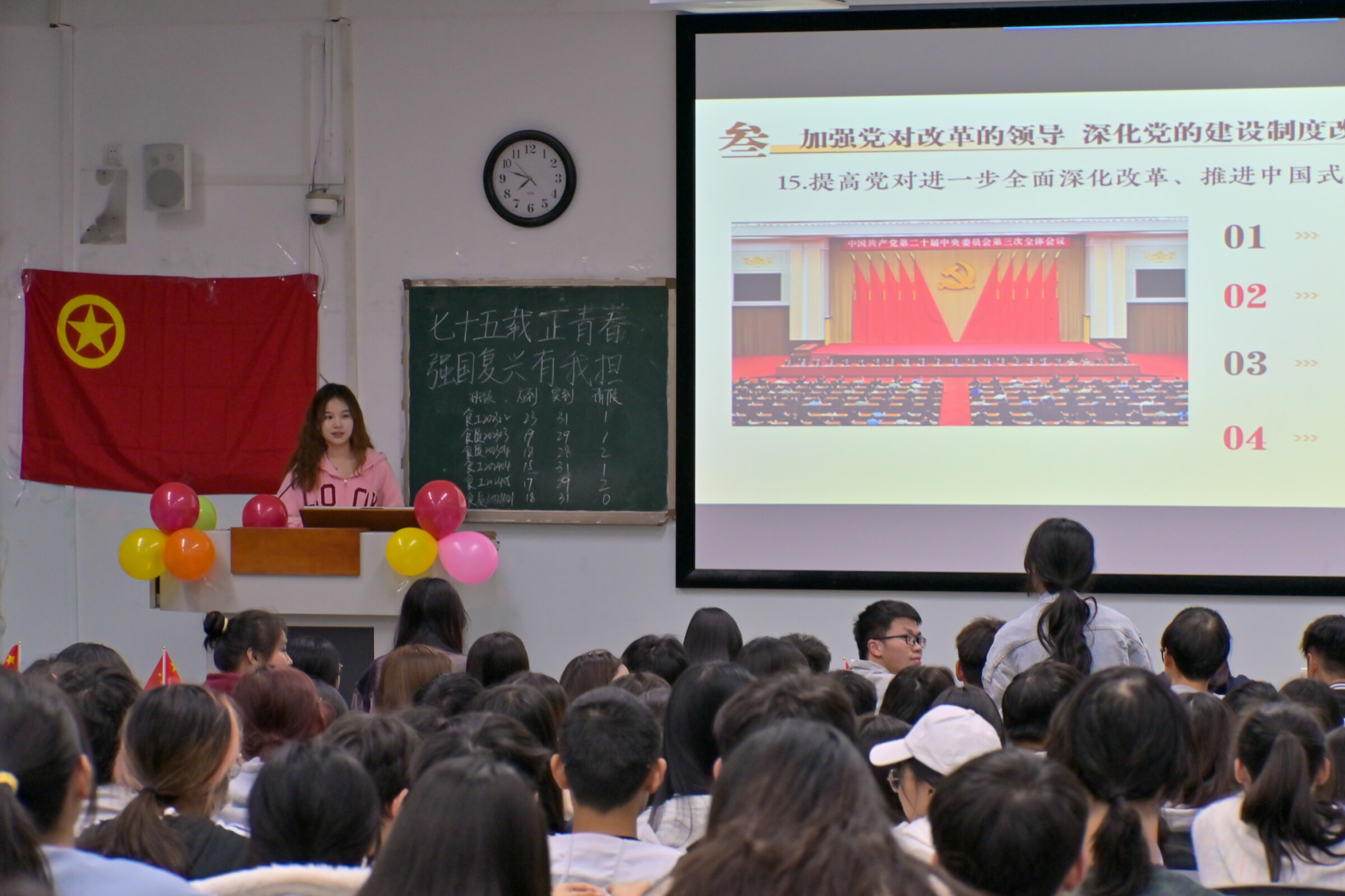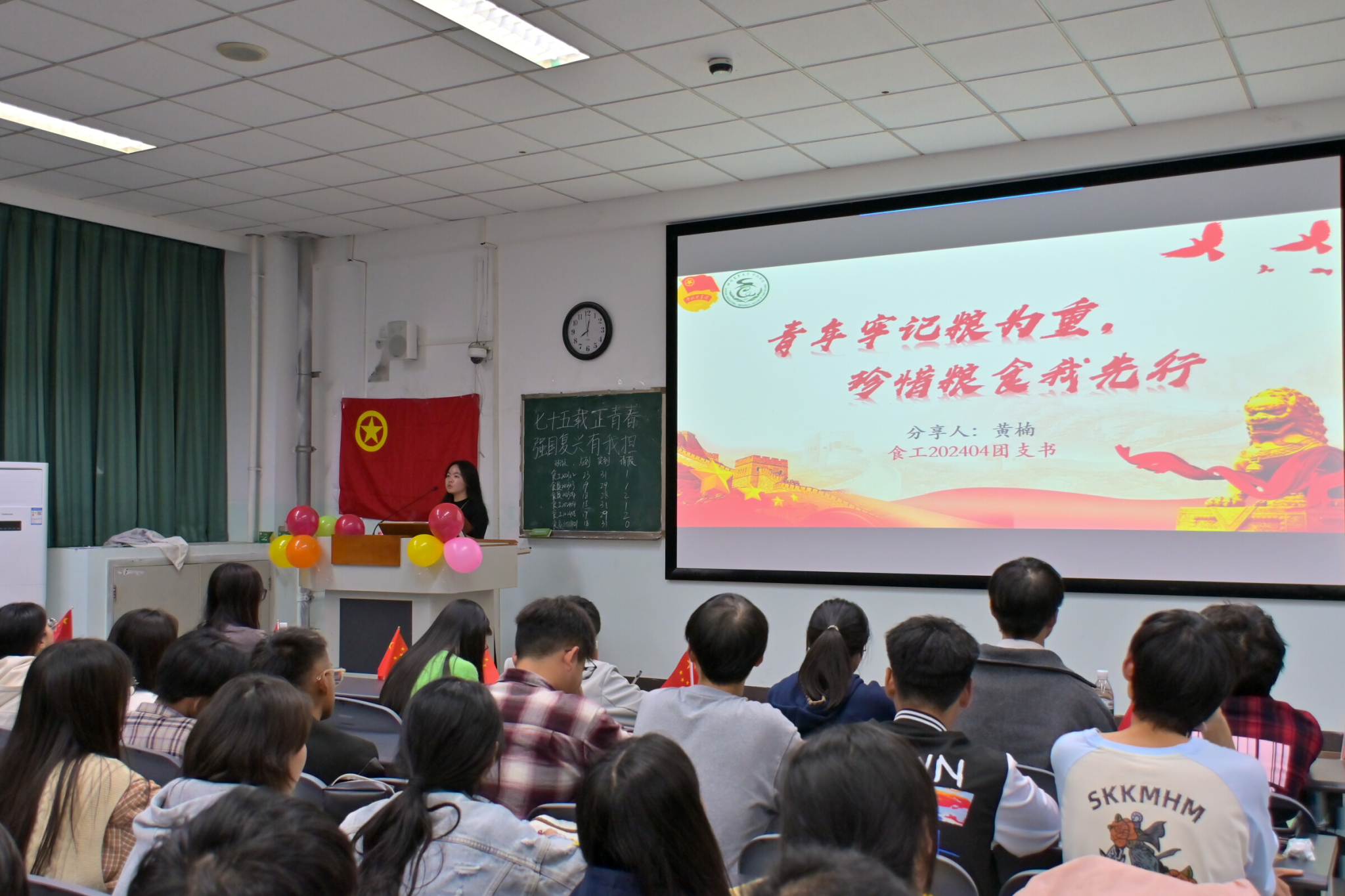 10月25日,由必赢亚洲bwin官网食质202303、食质202304、食工202302、食质202401、食工202404和食工202405六个班级联合举办的以“七十五载正青春,强国复兴有我担”为主题的示范性班团活动在10教A201室顺利举行。