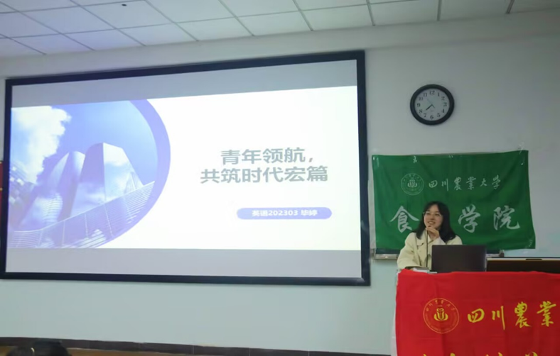 实践绘梦青春里,榜样引领未来时。世界论坛代表毕婷分享了参加会议的见闻与感悟,并从绿色发展、青年发展型城市、数字发展、文化传承与创新等4个方面对本次论坛主要内容进行了介绍,带领同学们了解并见识普乐同行青年公益发展中心和世界青年发展论坛,激励参与青年交流,感受国际化的氛围和多元文化面貌,传播中国声音,讲好中国故事,在世界青年交流中发出中国声音。