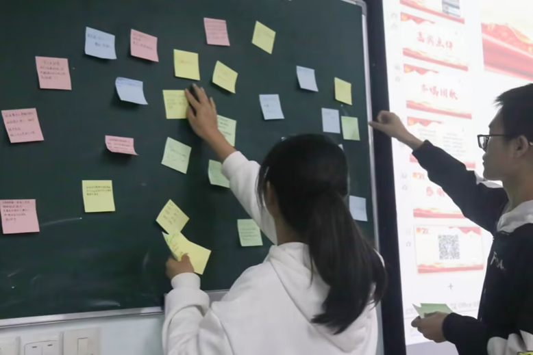 学习感悟功勋模范,砥砺前行国无疆。观看《下乡书记》短片,感恩党的付出。观看后,同学们将心中所想化作笔下文字,回荡青春誓言。青年的文字,有直抒胸臆的“永远爱你,人民的好书记”,也有温婉有力的语篇“党的坚韧羽翼,照亮乡村深处的昏暗;党的要强儿女,长期扎根基层”