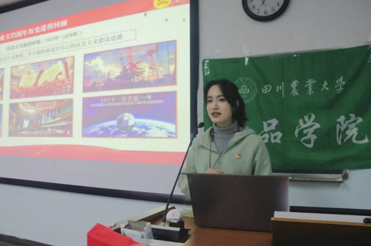 为深入学习贯彻习近平总书记在中华人民共和国成立七十五周年招待会上的重要讲话,激发广大青年学生为中国式现代化挺膺担当的使命感和责任感,11月10日,学院团委直属部门流动团支部、食质202402、食质202403班团支部和生命科学学院团委直属部门流动团支部与生计202301、生计202302班团支部联合举办的以“七十五载春秋梦,奋进新程日月长”为主题的示范性班团活动在十教A203室顺利举行。