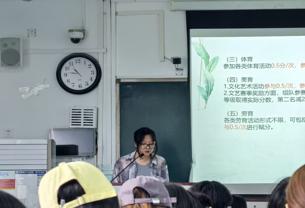 随后,干事王译涵为大家倾情解读“活动申请相关注意事项”“新政策讲解”“活动报名表与加分表”“跑库教学”以及“附加分评选要求”五大板块内容。在新政策讲解部分,她详细阐释二课成绩在综测中的占比变动、基础分和附加分的调整,以及各板块赋分的具体细则。跑库教学环节中,她通过实际操作演示,指导同学们如何高效完成学号核对与信息修正,确保加分表的准确性。最后,她强调附加分评选的公平性要求,明确主办方参与附加分评选的限制条件。