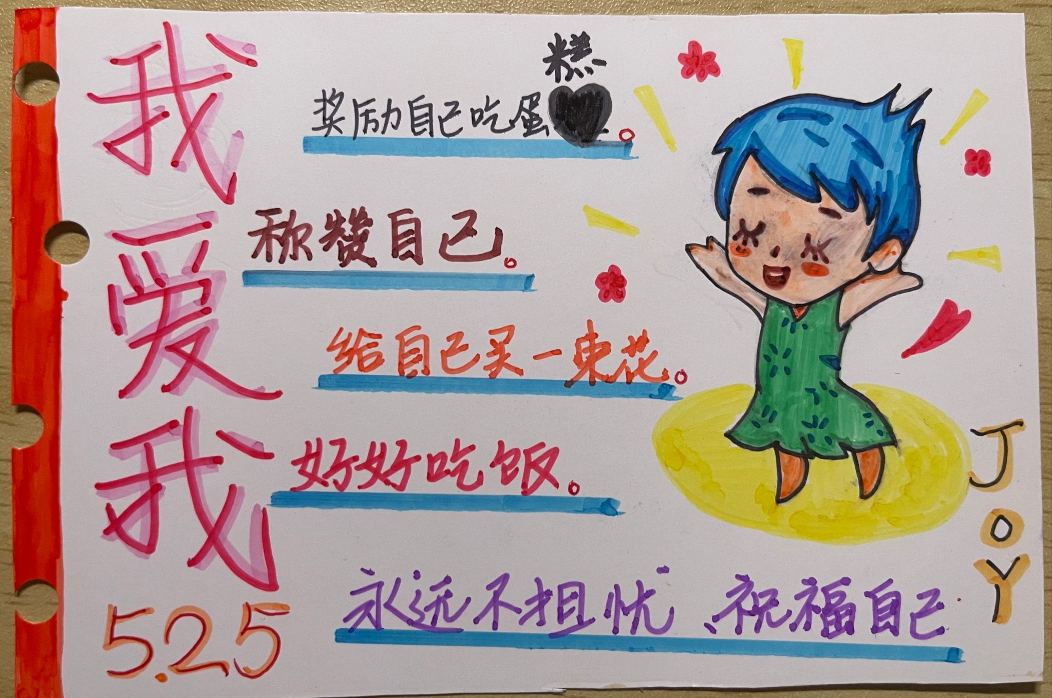 片尾曲响起时,一份特别的“情绪礼物”悄然传递。同学们以明信片的形式,将观影感悟化作斑斓笔迹,尽情抒发自己的人生感悟。有人在用水彩装点的卡片中用童趣纯粹的话语写上自己的愿望。“给自己买一束花”“永远不担忧,祝福自己。”;有人用将明信片改制为歌单样式并加以油画带来、热烈灿烂的视觉冲击,宛如“怒怒火山爆发后在天边留下的一抹云彩”;公共管理学院的同学杨昌沛说道:“这部电影不仅是一部儿童动画,更深度探讨了成长与情绪管理。接纳全部情绪,才能拼凑出完整的人生拼图。”更多文字流淌着真挚思考。二十余张明信片拼成的“情绪万花筒”,折射出青春心灵的多元光谱。