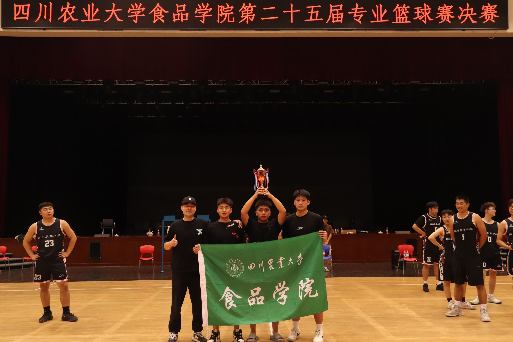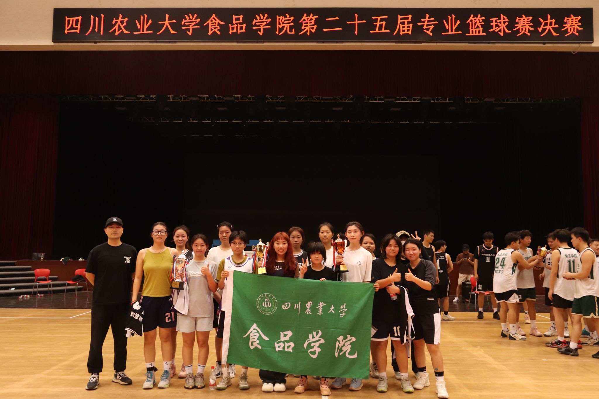 本次专业篮球赛获得女子组冠亚季军的队伍分别是:大四联队,22食健,22食工食质,男子组冠亚季军分别是:大四联队,22食工,22食健食质。在此次比赛中,每一支队伍都展现了卓越的球技和顽强的拼搏精神,为观众带来了精彩绝伦的比赛体验。本次篮球赛的举办不仅加深了学院内的体育文化氛围,也为同学们提供了一个展现自我实力和团队协作能力的广阔平台。今后同学们也将传承这份顽强拼搏的精神,在学习和生活中,勇挑重担,为校园文化建设贡献自己的一份力量。