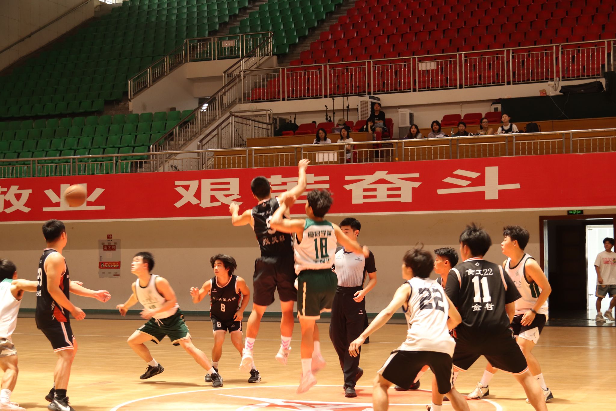 随着裁判员的一声哨响,篮球赛正式拉开帷幕,比赛开始,大四联队率先发难,凭借默契的团队配合和精准的投篮,迅速取得领先优势,而22级食工队也不甘示弱,队员们迅速调整战术,加强防守强度,通过积极的拼抢和快速的反击,逐渐缩小分差。上半场比赛结束时,大四联队以微弱优势领先。