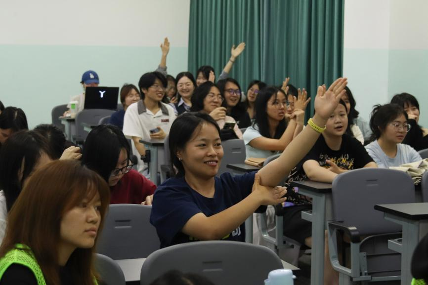 抢答环节一开始,整个教室的空气仿佛被瞬间点燃!刹那间,讲台下方的手臂如雨后春笋般争相林立,汇成了一片跃动的森林。