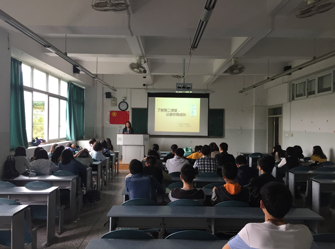 活动伊始,全体同学齐唱团歌,嘹亮的歌声,将此次团日活动拉开了序幕。两位主持人以对话的形式介绍了第二课堂的基本内容。随后,王越梅和林思颖同学分别上台讲解了第二课堂的积分原则和第二课堂APP的使用方法。紧接着,“你问我答”游戏加深了同学们对第二课堂的认识。最后,伴随着歌声结束了本次活动。