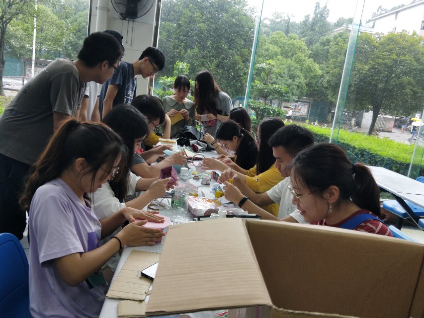 7月4日上午,暑期社会实践团队“EPT”团队在队长高诗洁的带领下,齐聚食堂,大家互相帮助、共同努力,最终成功完成了环保手工的制作。