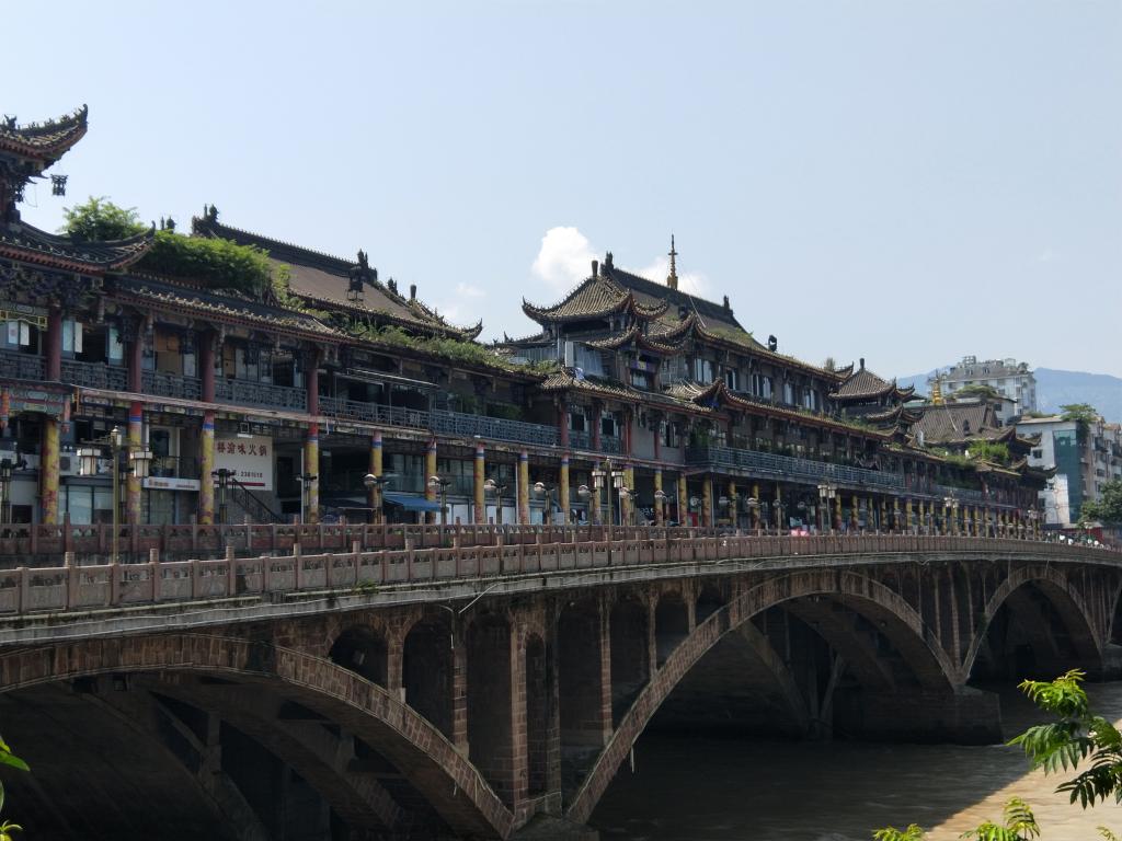 最后,队员们来到了廊桥。廊桥位于雅安市的城市中心,连接着青衣江的两岸,给老百姓生活带来了不少便利。廊桥的楼上有大大小小的展厅,展厅内陈列着雅安包括六县两区的特产,如名山区的茶叶,宝兴县的大理石,芦山县的根雕等,厅内还珍藏着红军长征的资料以及雅安历史等。成员们在展厅里了解到雅安的优质特产和文化魅力。参观完廊桥,丝路奇缘小队的雨城小游也就到此结束。