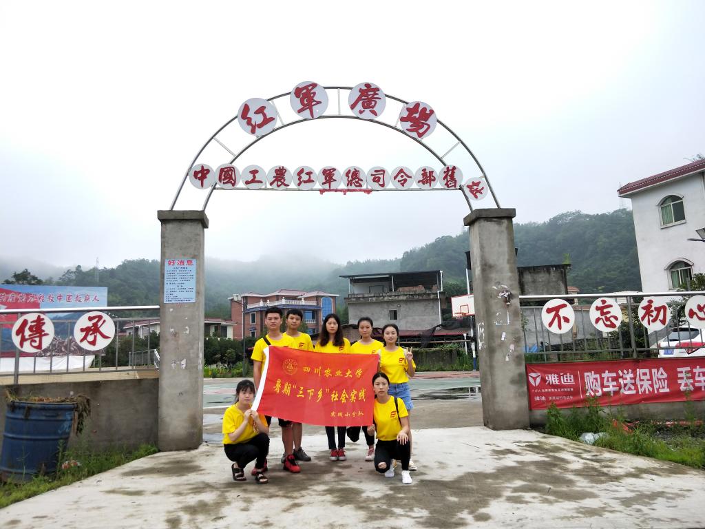 在陈老爷子的指引下,他们又前往芦阳镇的仁加坝村,参观红军司令部旧址。红星重征小队收获了当地人的赞美:“川农学子来的早,红军广场把景扫。拍下墙上历史篇,回校好写新闻稿。两棵大树五朵花,结伴同行最为妙。川农学生搞活动,回校传经又送宝。”