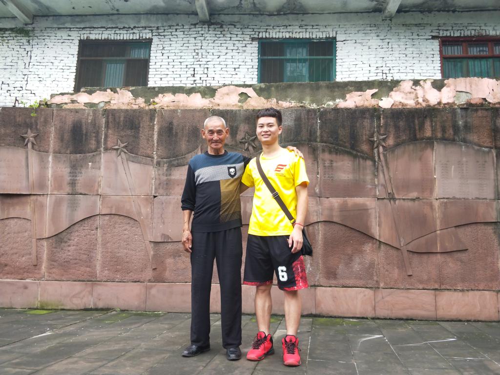 到达芦山县后,他们直达红军广场,幸运地见到了作为这个广场修建人之一的陈老爷子。陈老爷子今年已有八十高龄了,他也是从小听着红军的故事长大的,也正是因为受到这些故事的影响,他在十二年前与朋友一起修建了这个红军广场,以纪念红军长征精神。红军广场的墙上刻了红军在芦山的作战经历以及在芦山牺牲的英烈们的名字。看着墙壁上满满的名字,红星重征队队员们深受触动,感受到了英烈们视死如归的气节与大无畏的精神。