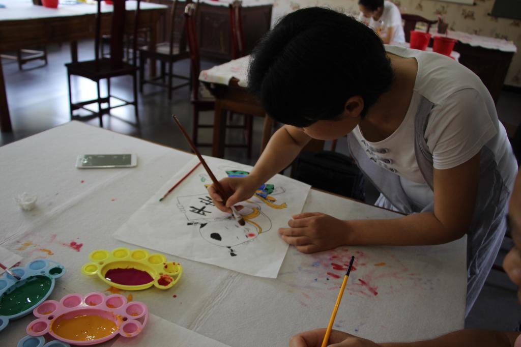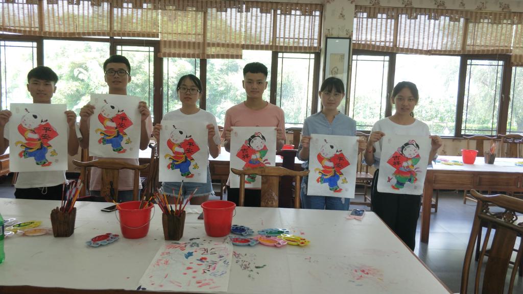 2018年7月27日上午,必赢亚洲bwin官网必赢亚洲bwin官网暑期社会实践“版刻春秋”团队来到了绵竹年画村的年画展览馆,这里设有年画体验学习室,在参观学习年画展览馆后,团队成员准备体验画年画。