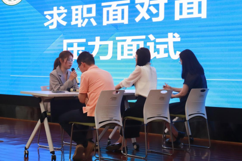 通过两轮的比拼,五位选手成功进入第三轮求职面试环节,三位面试官逐一对选手进行提问,结合选手职业规划面对面模拟现实职场中的工作压力和人际难题,全面考察选手对目标职业的理解以及抗压应变综合能力。“现在创业的大环境不是很好,你自己有什么竞争力吗”“你该如何打造自己品牌主理人的身份”,面对面试官诸多犀利的提问,五位选手从容不迫,冷静思考,向面试官全面分析了自己的观点,展现了对求职岗位的深入理解,赢得评委老师们的一致好评。