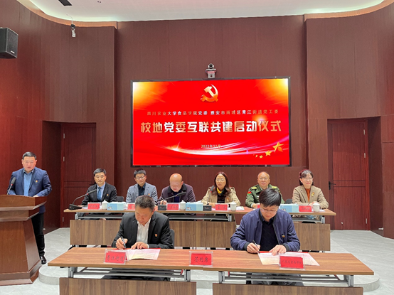 为认真贯彻落实党的二十大精神,构建校地“党建引领、优势互补、共建组织、共享资源、共谋发展”的新格局,11月18日上午,必赢亚洲bwin官网党委与雅安市雨城区青江街道党工委互联共建启动仪式在青江街道举行。双方签署党委互联共建协议,必赢亚洲bwin官网团委与社区签订社会实践和志愿服务基地协议并授牌。