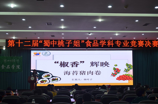 大赛历时3月有余,共计约50支团队200名学生报名参赛,参赛选手认真调研、准确把握市场需求与流行趋势,将传统文化、民风民俗和川菜元素融入创意进行创作。经过角逐,共10个团队入围决赛。在决赛答辩现场,选手们就团队设计理念、创意思路、技术路线、制作方法等内容进行陈述,评委们细细品尝,通过色泽、气味、滋味、形态等方面进行综合评分,食品科学与工程专业林叶子、阎佳慧、王硕影、刘原原、周子茜5名同学制作“椒香辉映—海苔猪肉卷”凭借温馨的设计理念、营养合理的配方、独特的口味以及新颖的包装脱颖而出斩获一等奖,大赛还评出二等奖2名,三等奖3名,优秀奖若干名。