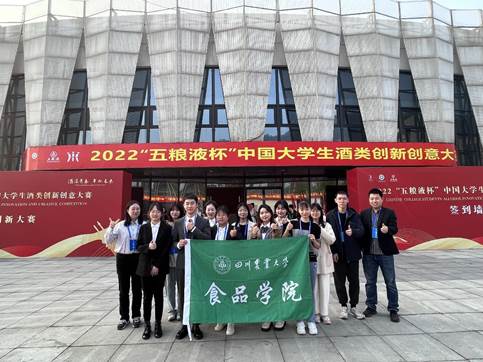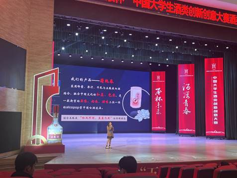 酒类创新是新增项目,包括以“五粮和美”文化创意与区域合作、酿酒科技创新与可持续发展。我院三个项目获得三等奖。其中,蒲桃春团队采用洋槐蜜、果汁、牛乳与五粮液白酒结合,融合中国文化的和美、包容,打造出一款新型的果味、奶味、酒味三位一体的alcopop型中国白酒饮品。有迹可循团队基于实验室优化获得的高产绿色木霉,自身菌体蛋白含及产蛋能力更高的假丝酵母和乳酸菌组成高效三元体系对酒糟进行发酵,可使酒糟中的蛋白质含量明显提升,实现酿酒副产物的高效利用。