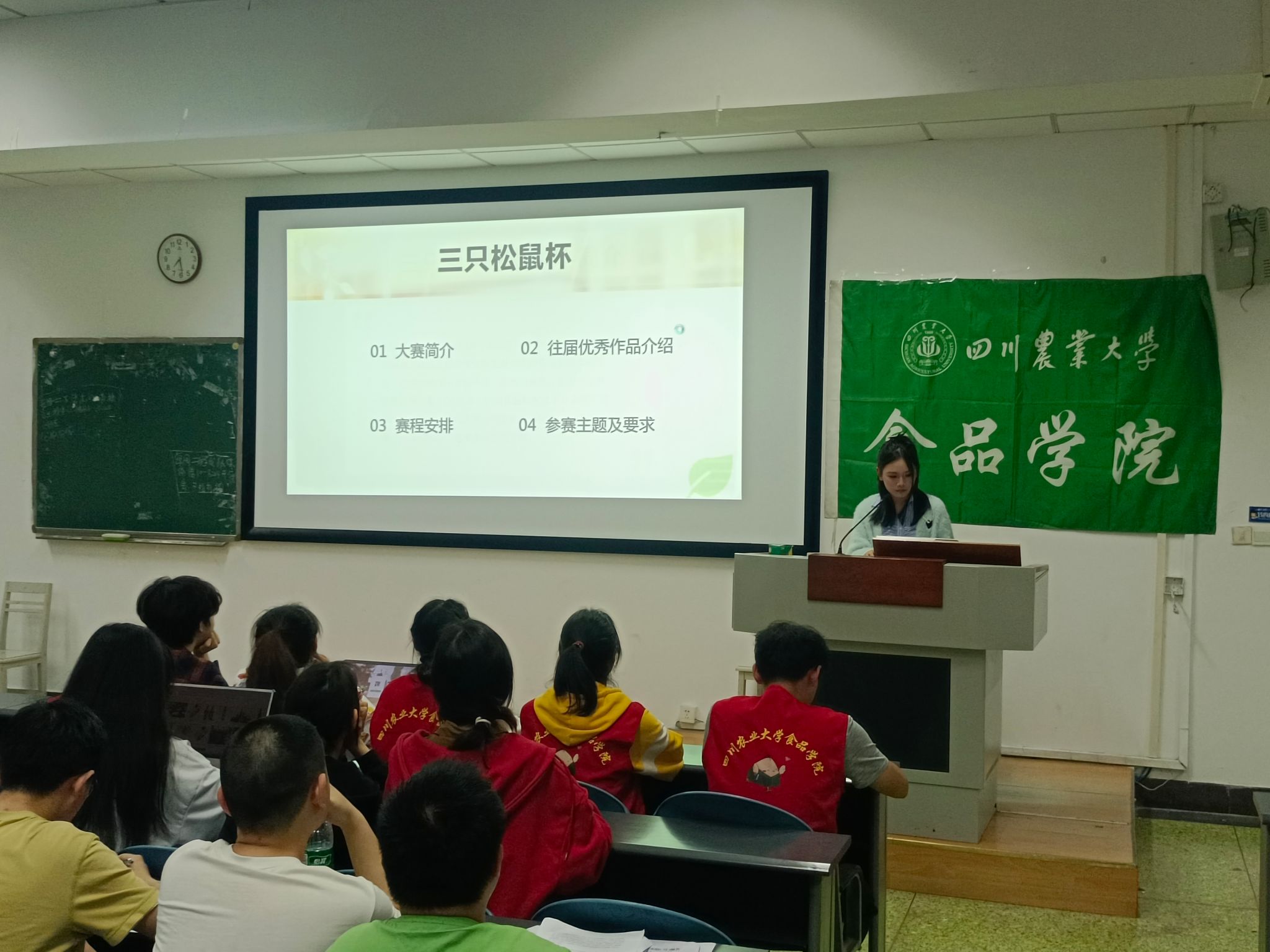 会议伊始,主持人张秀丽向大家详细介绍了中国食品科学技术协会承办的“三只松鼠杯”的参赛规则,赛程安排及本届大赛的主题:“挖掘地方特色,探索无限可能”,鼓励参赛团队以地方特色产品为灵感创作一款休闲食品。同时也向大家展示了往届我院学子的优秀参赛作品,如“巴克拉瓦”,“小熊阿坚”等,以此激励大家踊跃参与,帮助大家迈出了解大赛的第一步,成功搭建起我院学子与“三只松鼠杯”食品创新赛事的桥梁。