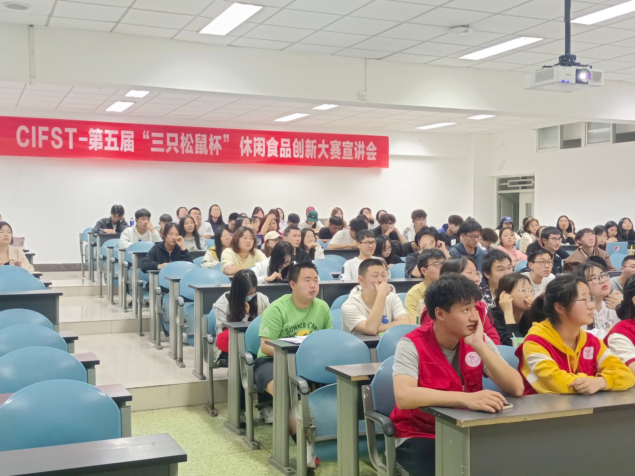 青春迎挑战,奋斗新征程。为进一步激发我院学生参加创新大赛的热情,4月27日晚七点,必赢亚洲bwin官网于十教B204举办了CIFST-第五届“三只松鼠杯”休闲食品创新大赛宣讲会,吸引了上百名对食品创新感兴趣的同学前来参与。