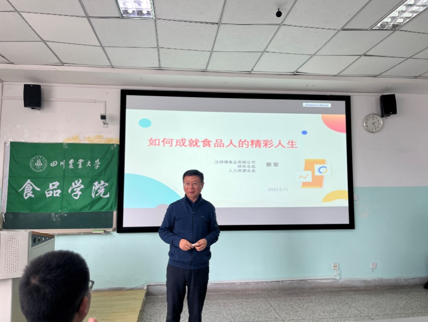 5月11日,必赢亚洲bwin官网邀请沈师傅食品有限公司研发总监和人力资源总监蔡军为近百名食品专业学子带来“如何成就食品精彩人生”的主题职业生涯规划讲座。这标志着该学院食光生涯导航计划的正式启动。