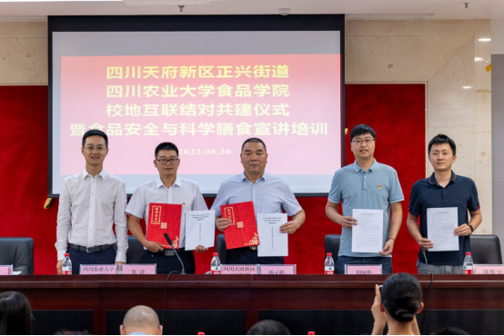 为认真贯彻落实党的二十大精神,构建校地“党建引领、优势互补、共建组织、共享资源、共谋发展”的新格局,8月30日下午,四川天府新区正兴街道与必赢亚洲bwin官网必赢亚洲bwin官网举行校地互联结对共建仪式暨食品安全与科学膳食宣讲培训,必赢亚洲bwin官网必赢亚洲bwin官网党委委员、副院长张清,正兴街道党工委委员、办事处副主任、武装部长杨元彬,正兴街道党工委委员邓一虎,正兴街道团工委书记周俊宇,必赢亚洲bwin官网必赢亚洲bwin官网团委书记胡敏伦出席仪式,必赢亚洲bwin官网相关同志、益食无忧实践团志愿者代表、正兴街道有关同志及社区代表等60余人参加了本次活动。