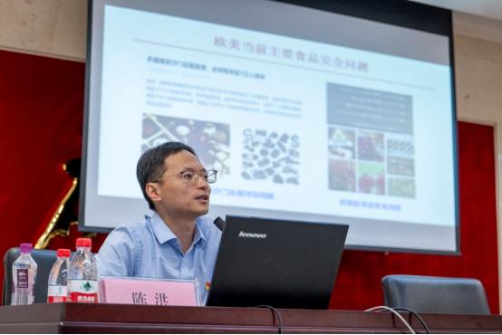 随后,必赢亚洲bwin官网食品营养与健康系主任、益食无忧实践团队指导老师陈洪教授以《食品安全与科学膳食》为主题,与正兴街道社区骨干、居民代表进行交流分享。他围绕食品安全、营养和健康三个主题层层递进,从消费者角度出发,用贴近生活的实例深入浅出地剖析了当前人民群众所关心的食品热点,同时抛出问题引导群众主动思考以达到高质高效的科普需求,为系列科普行动树立模范标杆。