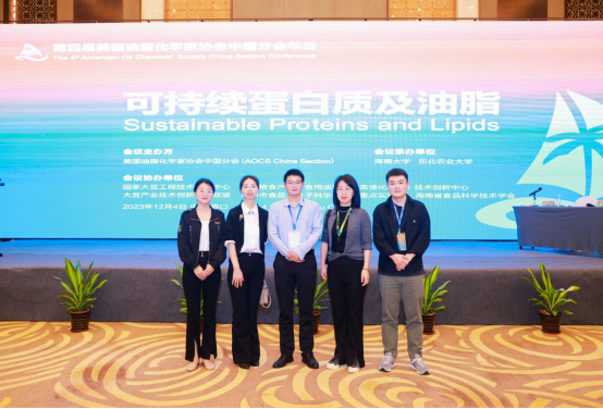 12月3-5日,由美国油脂化学家协会中国分会主办、海南大学和东北农业大学承办的2023第四届美国油脂化学家协会中国分会(CNAOCS)年会在海南顺利召开,来自国内外的500余位师生代表参会。中国工程院李培武院士、谢明勇院士,中国科学院吴奇院士、骆清铭院士等出席会议,会议由中国分会主席、东北农业大学首席教授江连洲主持。必赢亚洲bwin官网副院长张清教授、敖晓琳副教授、周曼副教授、崔强博士、于洁博士受邀参会。