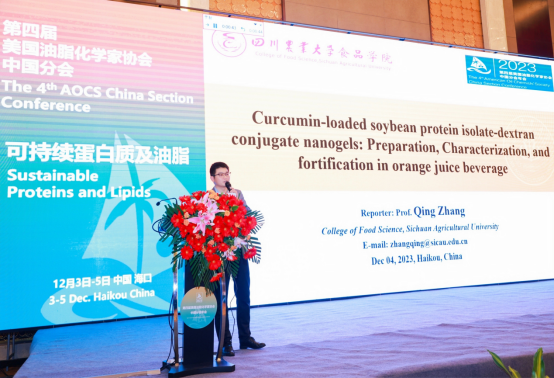 CNAOCS旨在促进中国现代油脂和蛋白质领域的科学研究、技术创新、产业发展和国际合作,本届年会的主题是可持续蛋白质及油脂。张清受邀以“负载姜黄素的大豆分离蛋白-葡萄糖纳米凝胶:制备、表征、和在橙汁饮料中的强化”为题作大会报告,详细介绍了姜黄素的生物活性以及健康功效,并将负载姜黄素的大豆分离蛋白-葡萄糖轭合物纳米凝胶这一复合材料成功应用与橙汁饮料的营养强化。研讨会期间,必赢亚洲bwin官网教师与参会代表进行了广泛交流。