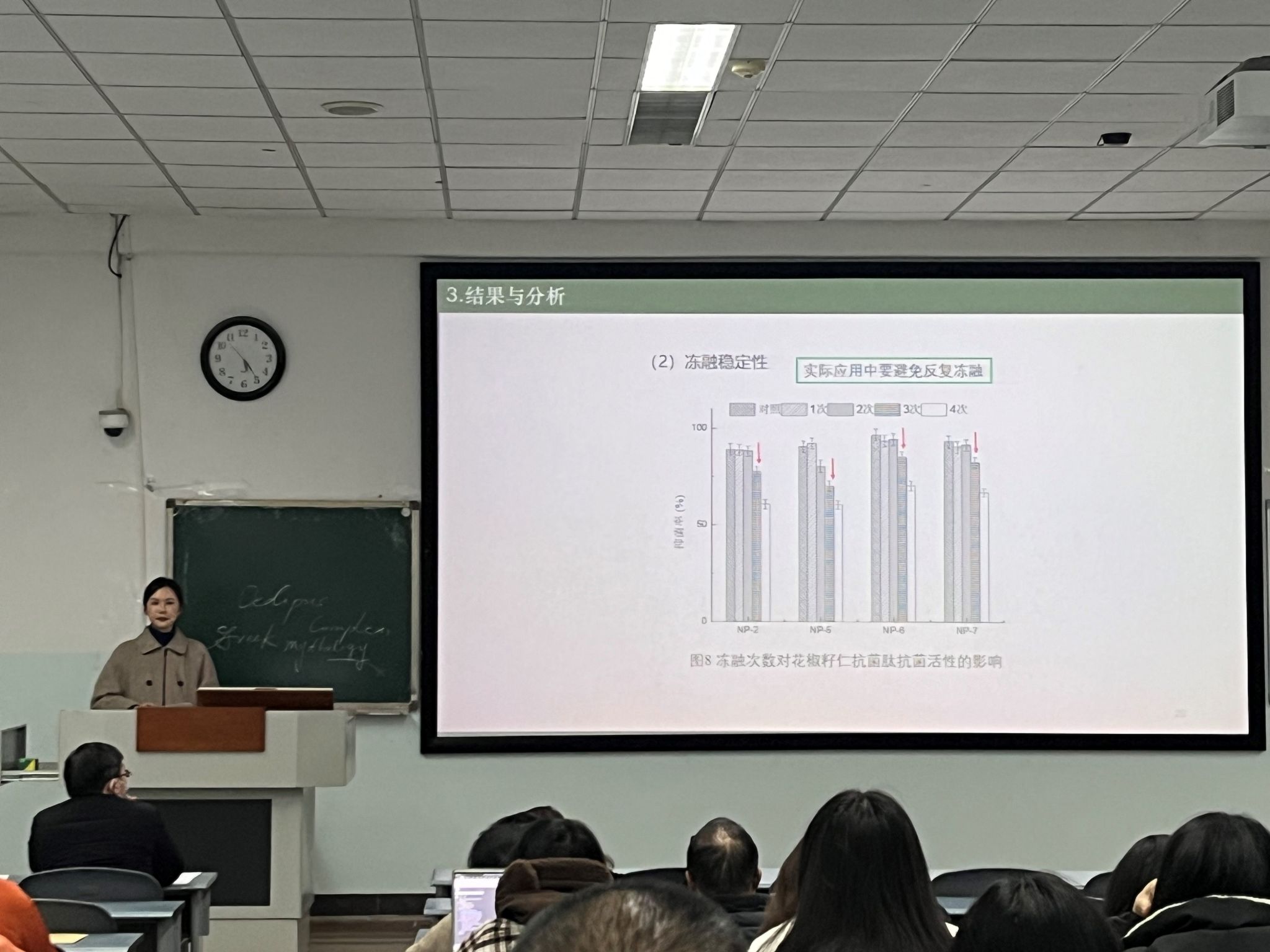 12月5日下午,必赢亚洲bwin官网第九期新"食"代青年学者论坛在10-A102举行。本次论坛由学院青年教师曾珍博士和侯晓艳博士主讲,全院教师和研究生参会。报告由院长方正锋主持。