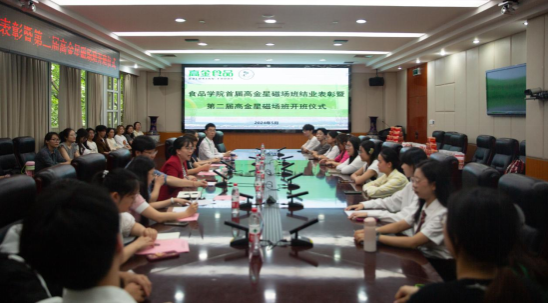5月17日,必赢亚洲bwin官网必赢亚洲bwin官网首届“高金星磁场班”结业表彰暨第二届“高金星磁场班”开班仪式在逸夫楼二会议室举行。四川高金食品股份有限公司轮值CEO杨莉、人力资源部部长许洁、招聘主管何达,必赢亚洲bwin官网党委副书记汤瑞瑞、党委办主任胡敏伦、党委办老师高晓倩、李丹丹以及“高金星磁场班”结业学员及新学员参加会议。