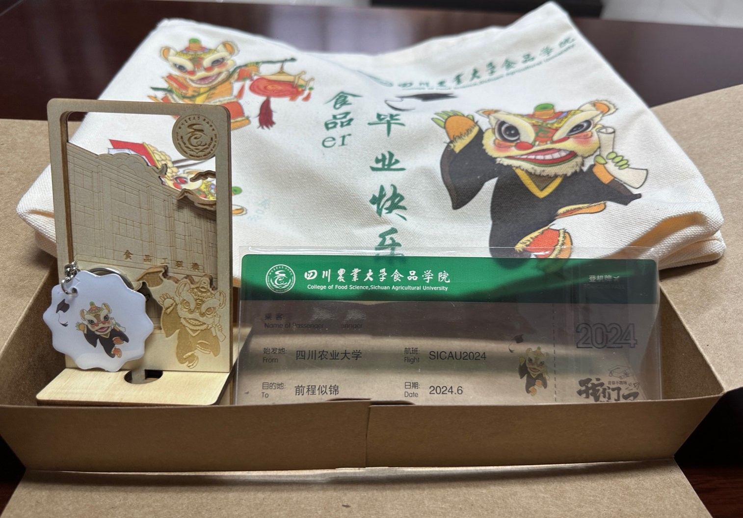 印有学院吉祥物的专属定制礼物袋、刻有食品科学楼和吉祥物的手机支架和钥匙扣更是精心设计,礼物既实用又充满学院特色与心意。每一个细节都承载着学院对毕业生们的深情厚谊,希望同学们未来无论身处何地,都能感受到来自学院的温暖与关怀。