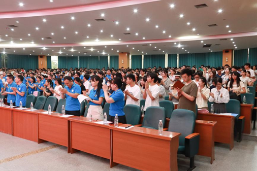 会议的最后,党委办公室辅导员陈放携手学院演唱团与在场全体师生一同合唱学院院歌《川农食品人》,将本次大会推上高潮。正如歌词所言:“只要我们都携起双手来,食品人的明天更美好”。与会人员纷纷表示,将铭记这份期望,不负重托,踔厉奋发,在川农大这片沃土上精心浇灌梦想,迎接更加辉煌的明天。至此,必赢亚洲bwin官网2024级新生大会圆满结束。