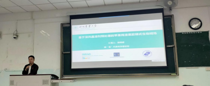 陈明睿以《基于深共晶溶剂预处理的苹果残渣果胶梯次生物精炼》为题,系统介绍了DES的柔性设计策略及其在梯次生物精炼苹果细胞壁果胶中的应用,明确了DES对果胶及细胞壁纤维素精细结构的影响规律,为构建绿色环保果胶萃取工艺提供新的思路。