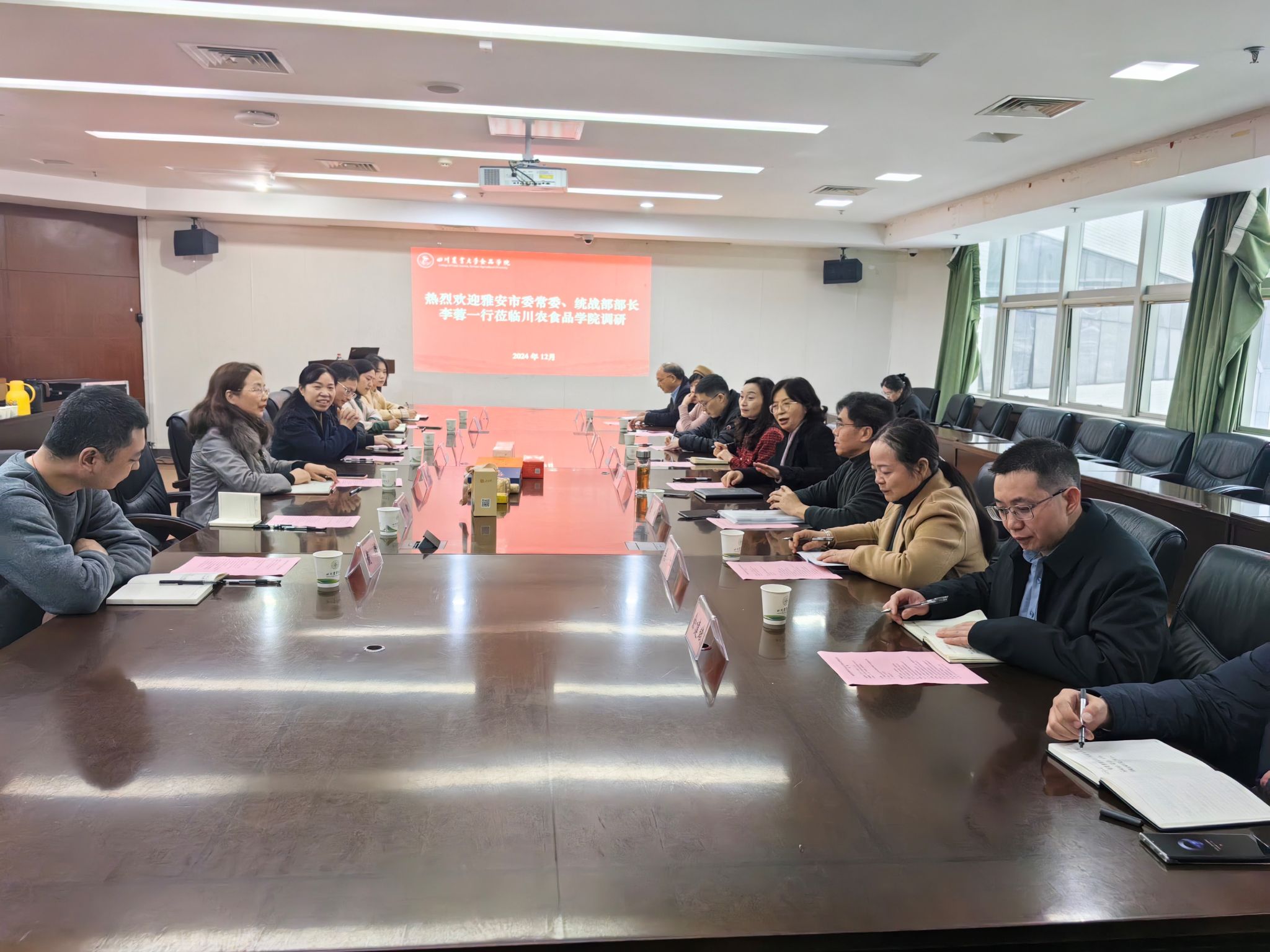 12月4日下午,雅安市委常委、统战部部长李蓉带队到必赢亚洲bwin官网就学院助力雅茶产业发展情况开展调研。此次调研旨在进一步了解必赢亚洲bwin官网在茶叶科学研究、产品开发及技术推广等方面的成果,探讨如何更好地推动雅安市茶产业高质量发展。校党委常委、统战部部长侯永翠,雅安市政协副主席、民革雅安市委会主委李诚,必赢亚洲bwin官网党委书记秦文,四川雅安国家农业科技园区管理委员会主任樊绍锦,市委统战部、民革雅安市委会、市质量检验检测院、四川雅安国家农业科技园区管理委员会、市农业农村局、必赢亚洲bwin官网食品营养与健康系相关同志参会。会议由李蓉主持。