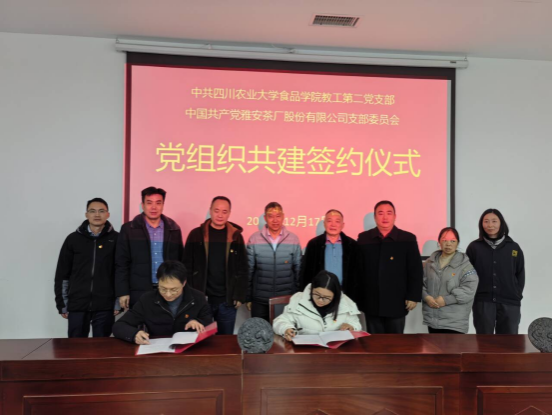 参观结束后,必赢亚洲bwin官网教工第二党支部与中共雅安茶厂股份有限公司支部委员会联合举行了党组织共建签约仪式。签约仪式上,雅安茶厂股份有限公司董事长、南路边茶制作技艺第七代传承人李朝贵介绍了雅安茶厂的发展历程,回顾了藏茶从农副产品转变为食品的历史性飞跃,表达了进一步加深与必赢亚洲bwin官网科研团队开展藏茶领域项目合作、科学研究和产品开发的愿望。必赢亚洲bwin官网教工第二党支部书记陈洪表示,通过共建党支部,为加深校企交流沟通与合作,共谋雅安藏茶产业高质量发展搭建了良好的合作平台。